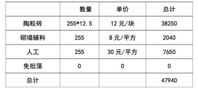 內(nèi)墻陶粒磚費(fèi)用統(tǒng)計(jì)表