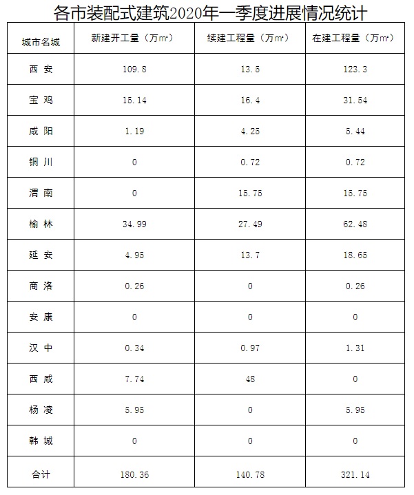(二)項(xiàng)目建設(shè)。根據(jù)重點(diǎn)項(xiàng)目建設(shè)計(jì)劃及疫情防控等需求,西安市公共衛(wèi)生中心、西安咸陽(yáng)國(guó)際機(jī)場(chǎng)分流檢測(cè)中心等工程開工建設(shè)、投入使用。一季度裝配式在建建筑面積共321.14萬(wàn)平方米,其中新開工180.36萬(wàn)平方米、續(xù)建140.78萬(wàn)平方米。(具體情況見(jiàn)附表)