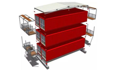 模塊化建筑即將傳統(tǒng)房屋以單個房間或一定的三維建筑空間為建筑模塊單元進(jìn)行劃分,并在工廠對模塊單元樓板、天花板、墻體進(jìn)行提前預(yù)制安裝,完成后將這些建筑模塊單元輸至現(xiàn)場,使用起重裝備像“搭建積木”一樣將其堆疊、連接在一起,組成一個完整的建筑。
