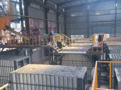 一、生產(chǎn)模式是由發(fā)泡攪拌計量系統(tǒng)、澆筑系統(tǒng)、模具環(huán)形輥道動力控制系統(tǒng)、模具成型車系統(tǒng)、擺渡車、出板脫模車、輕骨料提升系統(tǒng)等組成;