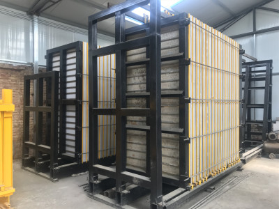 3、出板脫模車:配備一次性可以脫模出10塊復(fù)合隔墻板的脫模車;